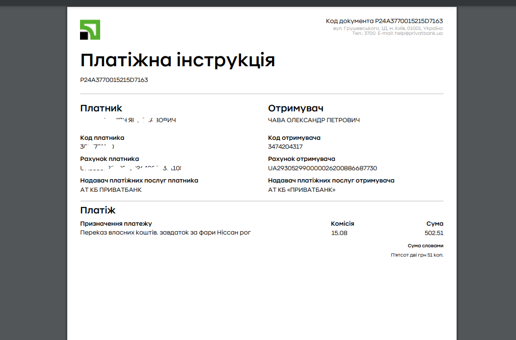 Чава Олександр, номер картки 5168 7456 5140 9242.